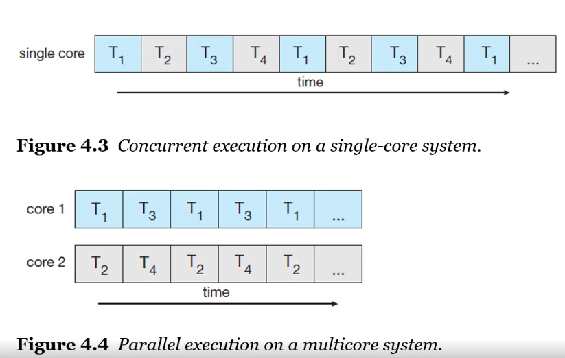 - 싱글 코어 : 시간에 따라 사이사이에 끼워 넣어 time sharing 함