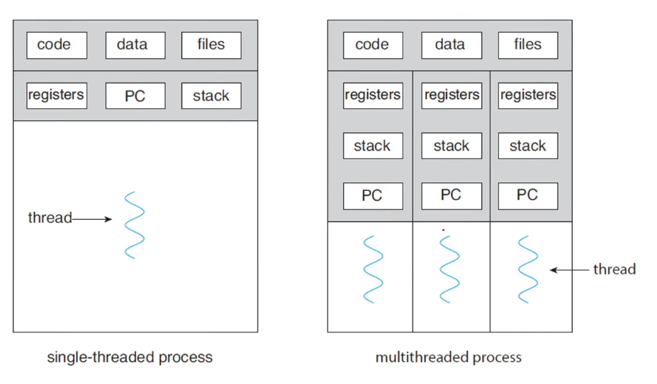 - 멀티스레딩이 제공된다면, CPU를 점유하는 단위가 스레드가 됨