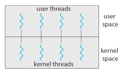 코어에 직접 스레딩 할 수 있는 스레드를 커널 스레드로 운영체제가 생성해서 운영체제 직접 관리